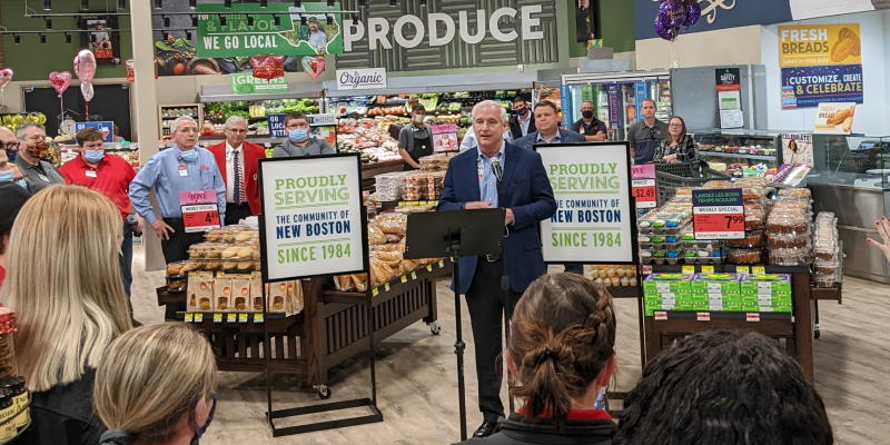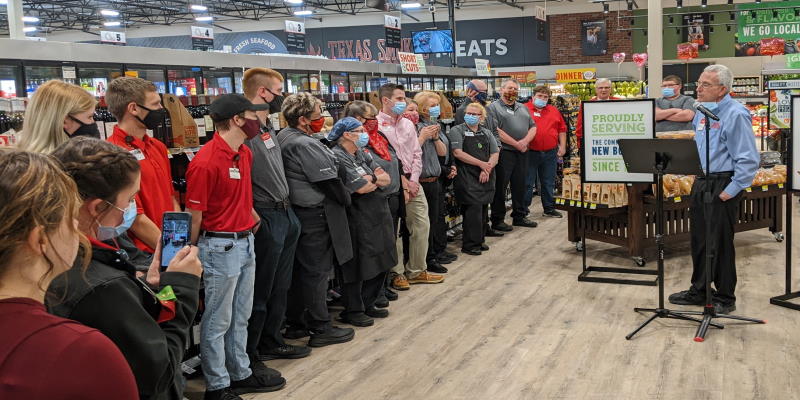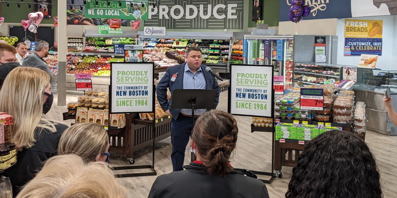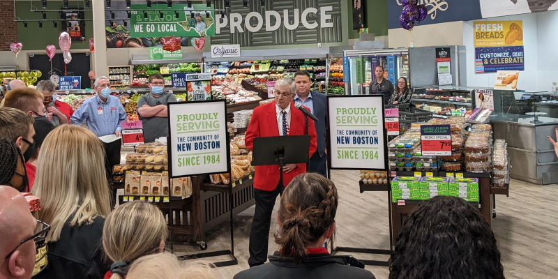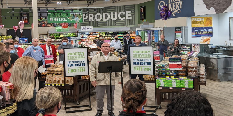 Brookshire's, 210 N McCoy Blvd, Grand-ReOpening and Ribbon Cutting - Feb 10, 2022. Great day at Brookshires here in New Boston. They even had the 14' V-8 Shopping Cart on display. Management and 3rd generation ownership of Brookshire's - Brad Brookshire- was here for a great day! New Boston High School Band was here and performed a great dance routine - all in celebration of Brookshire's being here since 1984. Former Store Manager's were here speaking about what a great opportunity it is for the high school students to get a part-time job here and stay within the company!! Great Day for New Boston!!